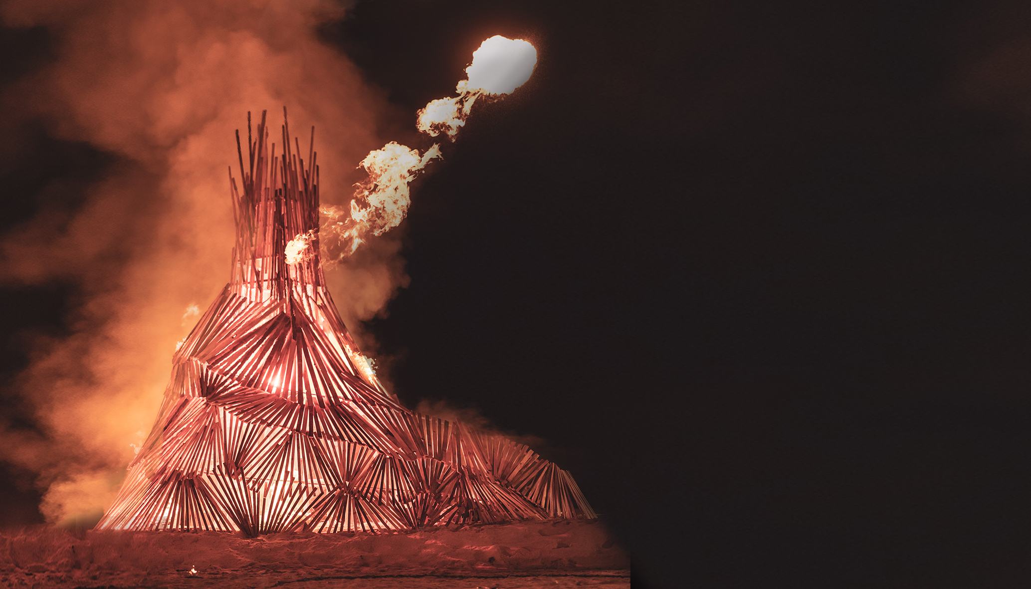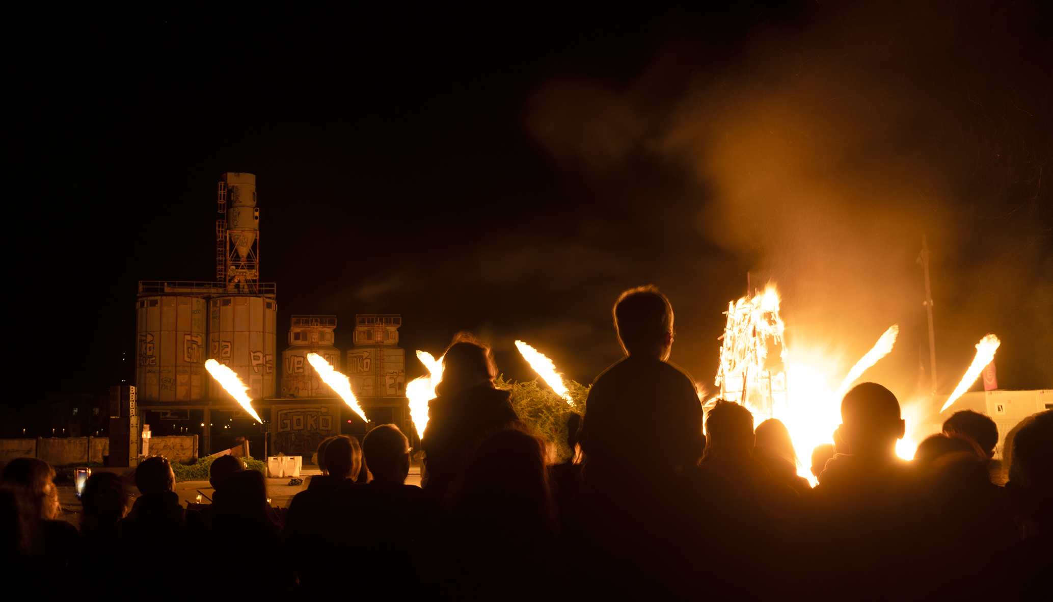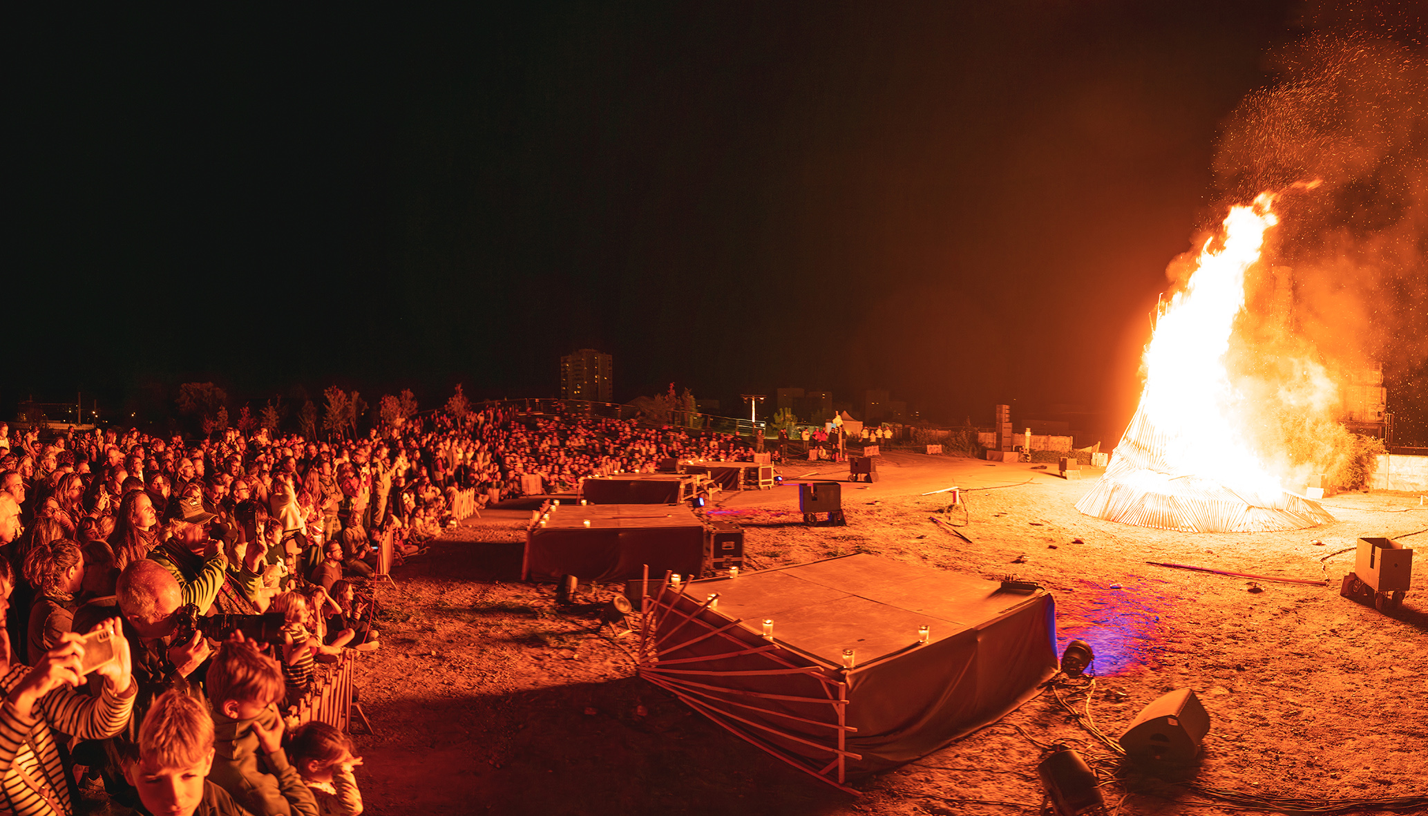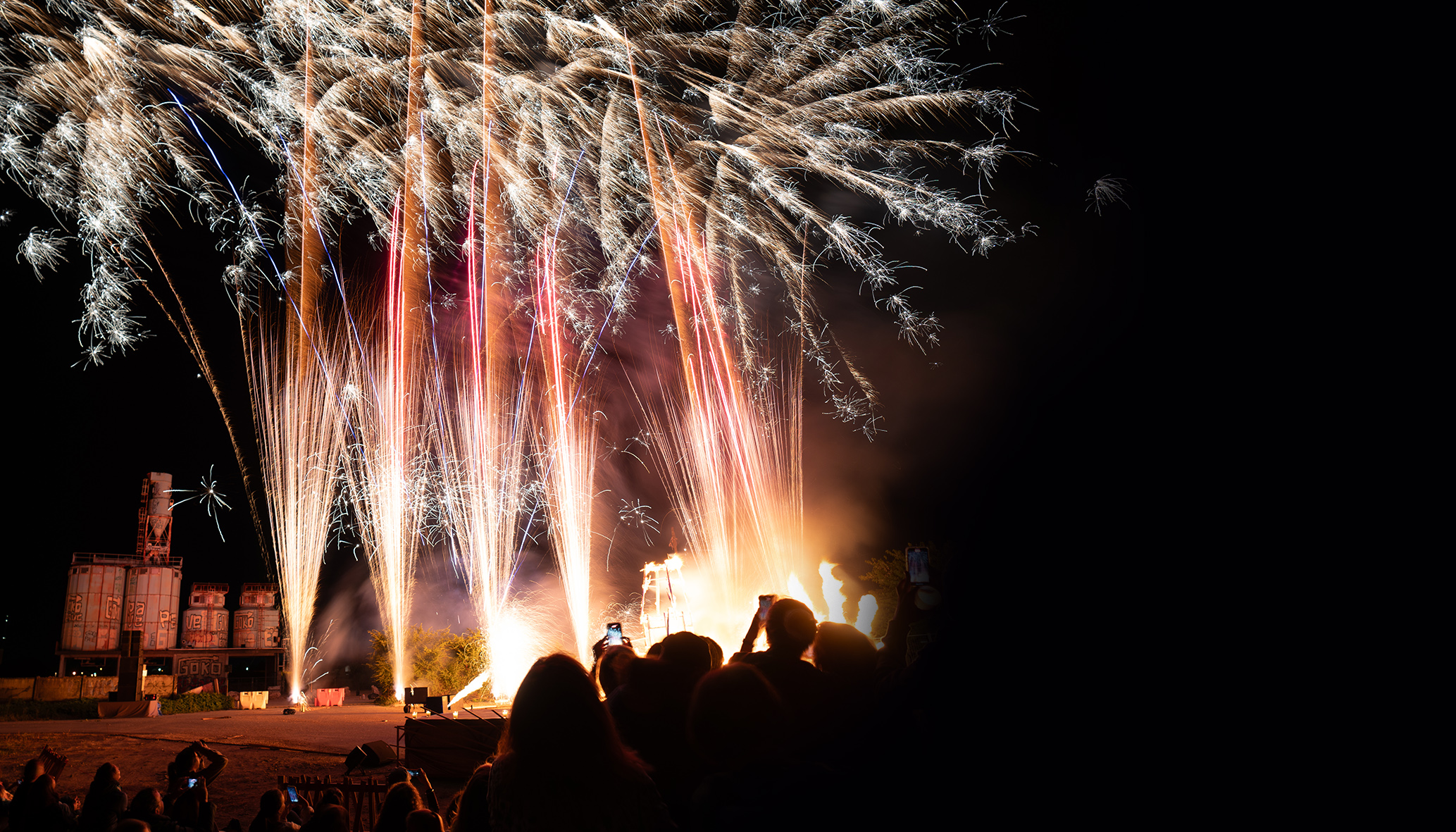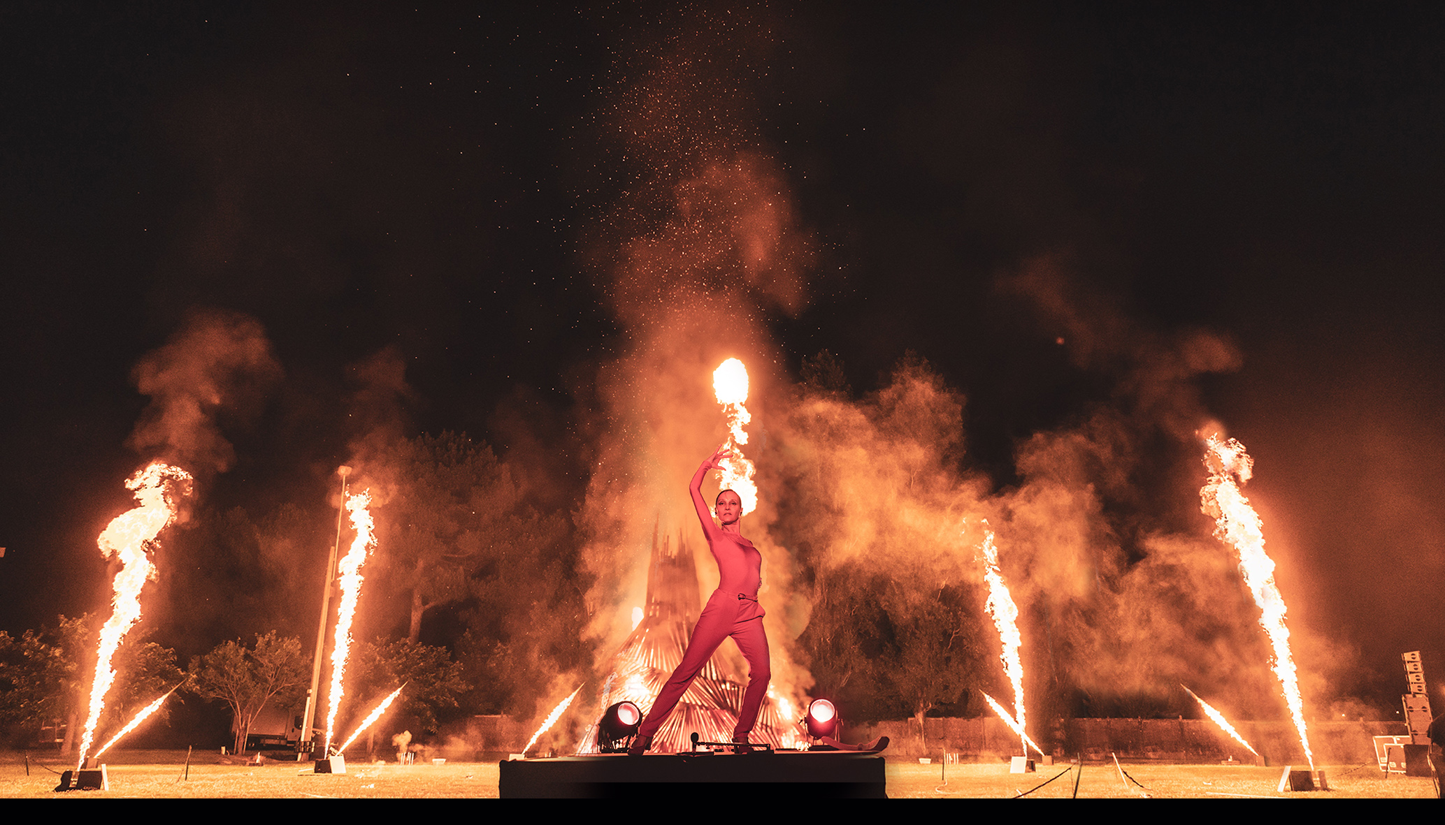 L’artificier enflamme un brin de paille, une torche, la sculpture puis le ciel,